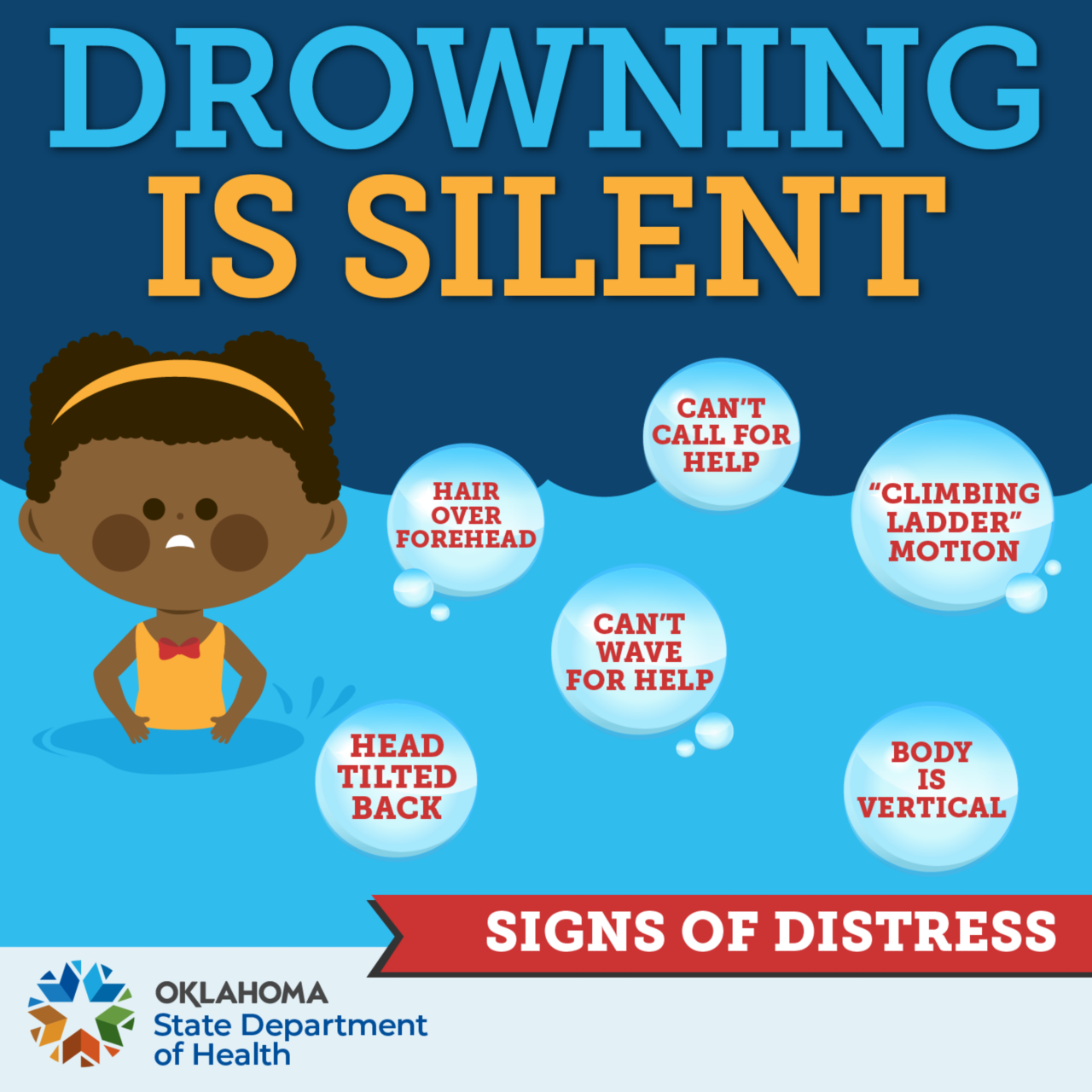 Drowning is the leading cause of death for 1-4 year olds in Oklahoma. Drowning can happen within seconds, in water that’s only 2 inches deep, and is often silent. It can happen to anyone, anytime there is access to water.