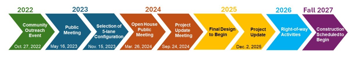 The areas previously described as the Middle and North Segments are called “Project 2”. Project 2 is generally between SH-259A North and Golf Course Road. Project 2 is currently in the design process and scheduled to start construction in 2026.The September 24, 2024, Project Update Meeting will specifically address Project 2.