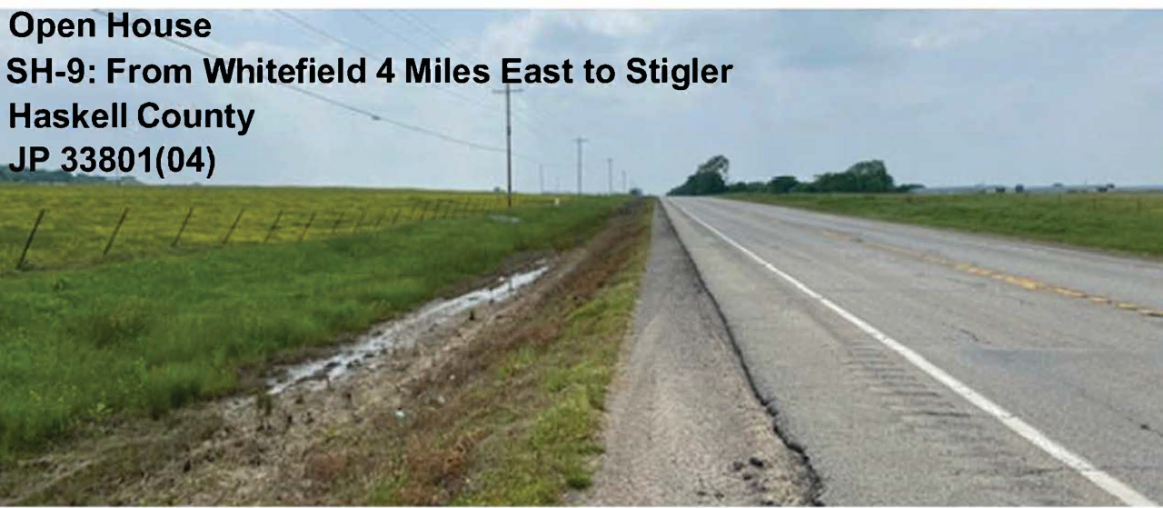 The Oklahoma Department of Transportation (ODOT), in cooperation with the Federal Highway Administration (FHWA), proposes to make safety improvements to SH-9 starting just east of the Kings Creek bridge outside of Whitefield and extending east 4 miles in Haskell County, OK. This segment of SH-9 is an open section minor arterial highway facility with two 12-foot-wide paved driving lanes and 3-foot-wide shoulders. Within the project area, there are angled intersections and drives, poor traffic flow, deteriorating pavement, narrow shoulders, and substandard sag curves. This stretch of SH-9 has one span bridge and five narrow reinforced concrete box (RCB) bridges listed on the National Bridge Inventory (NBIs #29187, #11605, #11607, #11934, #01301 & 11614). The 2023 traffic volume is 6,900 vehicles per day (vpd), which is projected to increase to 8,300 vpd by 2043.