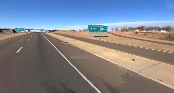 I-40 underneath Douglas Blvd is a four-lane divided urban interstate with a 40-ft wide grass median, 12-ft wide driving lanes, 3-ft wide inside shoulders, and 10-ft wide outside shoulders. The current AADT on I-40 is 54,574 vehicles per day (vpd), and is projected to increase to 84,580 vpd by the year 2045. The existing I 40 and Douglas Boulevard interchange is a full cloverleaf interchange with collector-distributor roads along I-40. The number of collisions at this location is higher than the state average at similar locations.