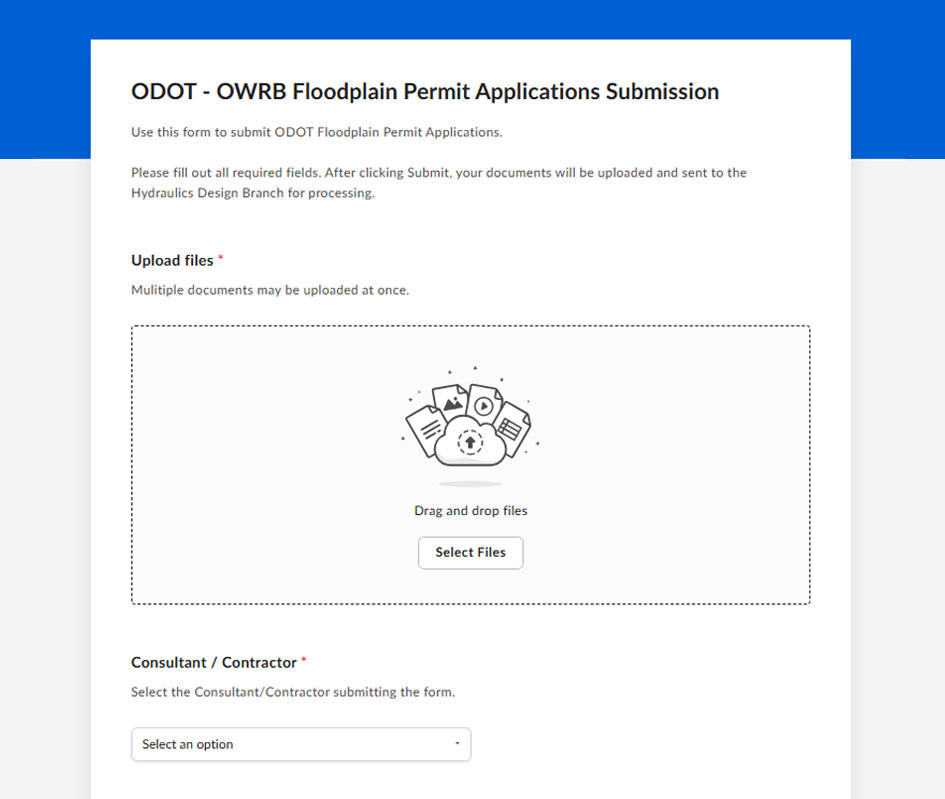 In an effort to enhance ODOT's ability to serve our contracting community, the department is now accepting electronic OWRB Floodplain Permit Application submissions using Box, effective June 30, 2025.