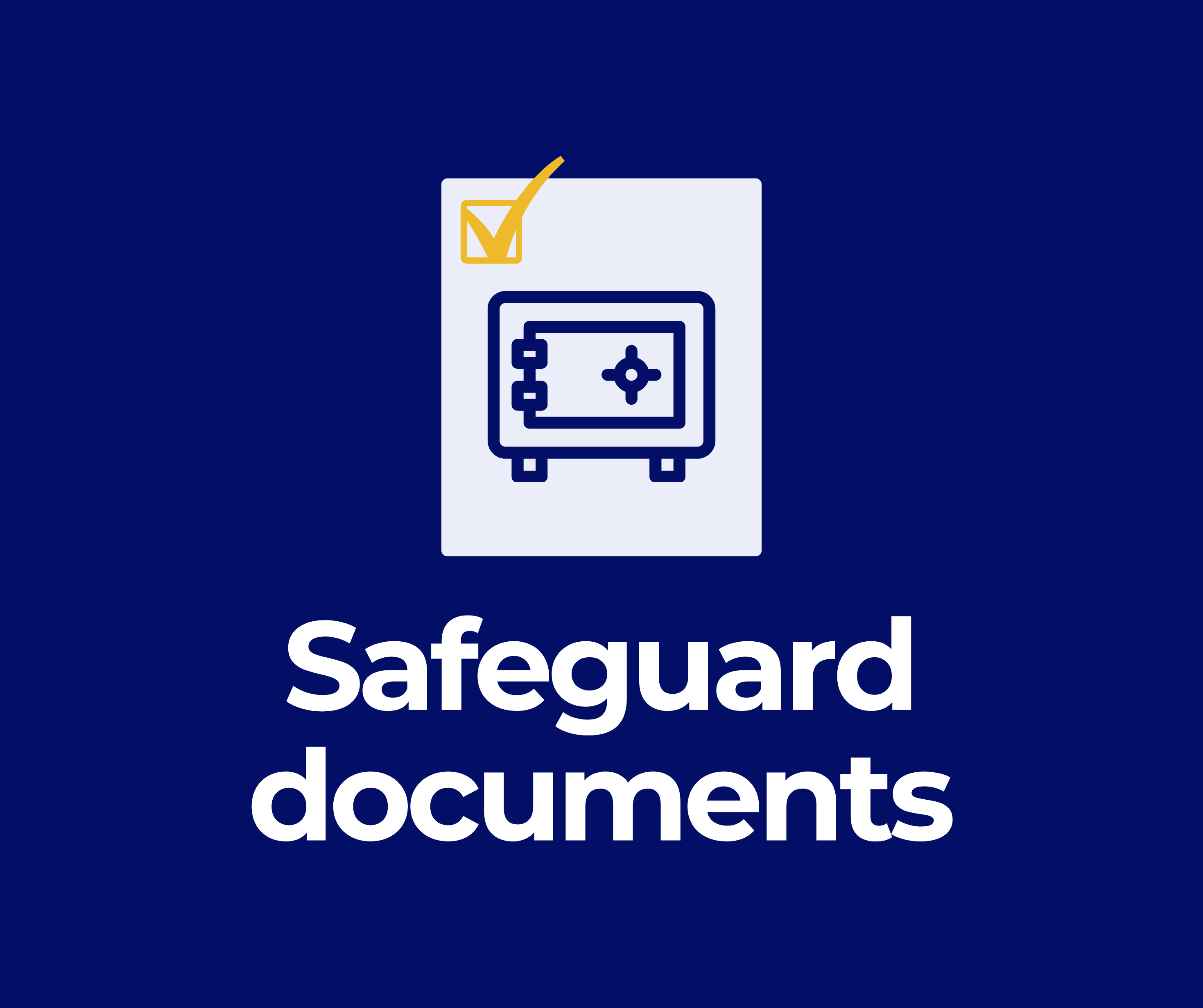 Keep these documents in a safe place - protected from fire, water and theft - so you’ll have them in the event of an emergency.
