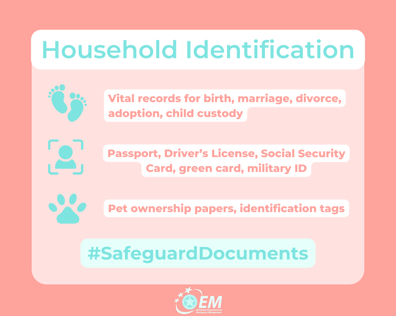 This 10-post toolkit was released as part of the Oklahoma Department of Emergency Management's yearlong 12 Ways to Prepare social media campaign in 2024. This campaign aimed to meet residents where they were at with informational action items, encouraging them to be #ReadyOK while equipping them to that end. June's focus taught residents to Safeguard Documents, providing categories and lists of documents to store and ideas on how to store them safely.
