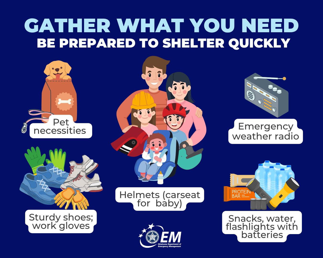 Do you have what you need to shelter quickly? It's #StormSZN, Oklahoma! Know where your supplies are and be ready to grab them and go at a moment's notice. Better yet - keep them together in an emergency kit!