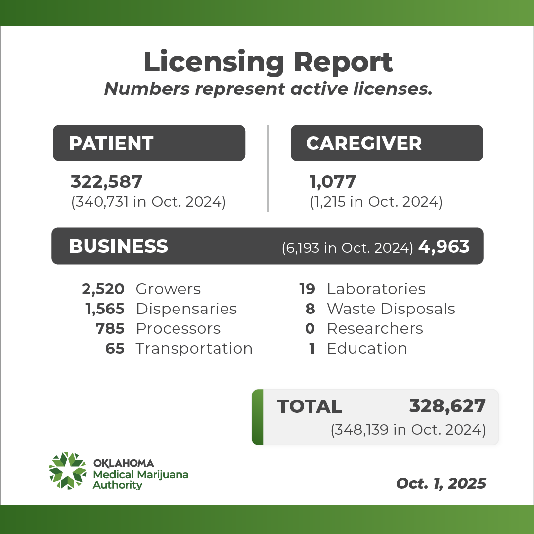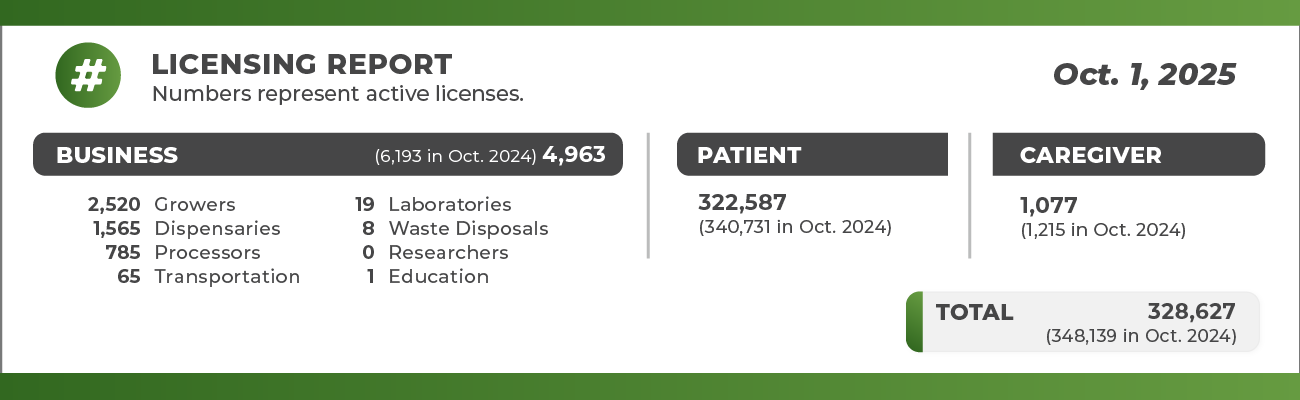 The OMMA Dashboard is maintained and updated by NCS Analytics. They have created an analytical tool that actively monitors and analyzes data from multiple systems including Metrc, the state’s seed-to-sale tracking system. View this data-driven tool here.